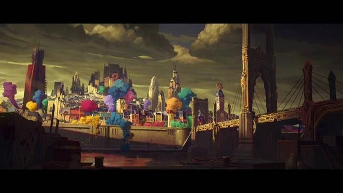 《英雄联盟:双城之战》将英雄联盟宇宙中两座对立的城邦——皮尔特沃夫和祖安作为故事发生的舞台,围绕金克丝与蔚这一对双城姐妹作为故事的叙事中心。